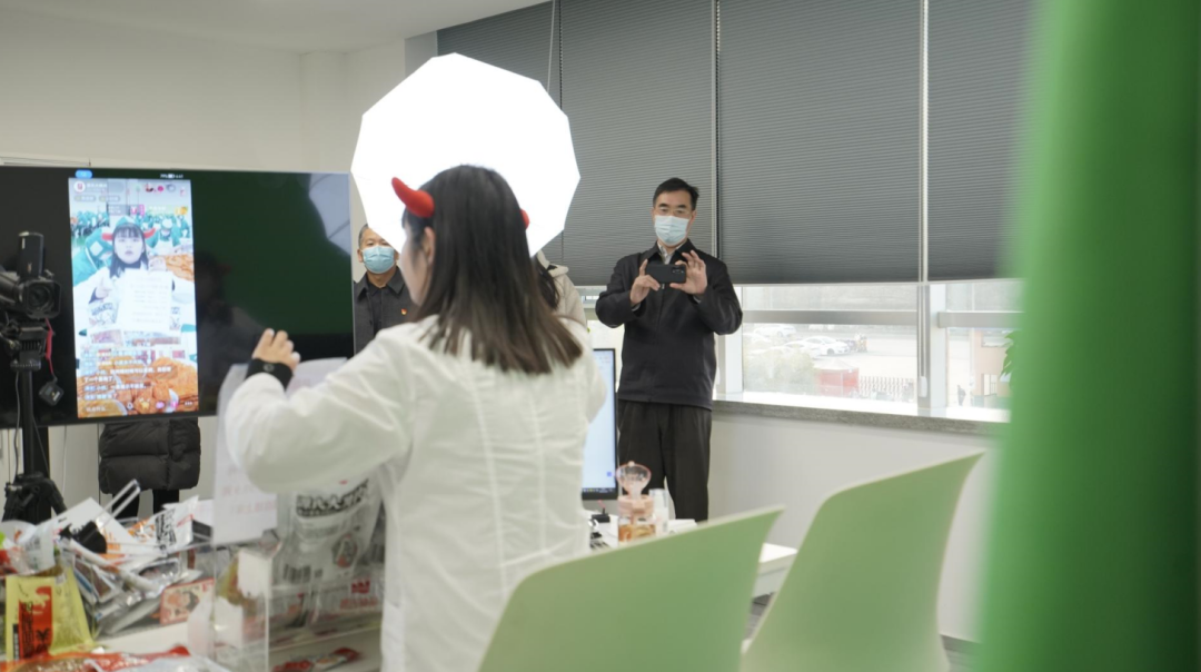 譚董帶領(lǐng)大家先在一樓展示廳觀看了源氏企業(yè)宣傳片,讓來賓們初步了解了公司規(guī)模以及生產(chǎn)流程,品牌中心焦夢(mèng)圓陪同進(jìn)行實(shí)時(shí)講解,讓大家更快速地感受到源氏食品的主營(yíng)產(chǎn)品、發(fā)展成果和企業(yè)文化。隨后,一行人來到三樓新媒體運(yùn)營(yíng)中心,并進(jìn)入直播間參觀,現(xiàn)場(chǎng)問詢和感受源氏食品抖音平臺(tái)直播情況,李文峰副會(huì)長(zhǎng)表示源氏食品全平臺(tái)電商運(yùn)營(yíng)模式非常值得學(xué)習(xí)和借鑒。