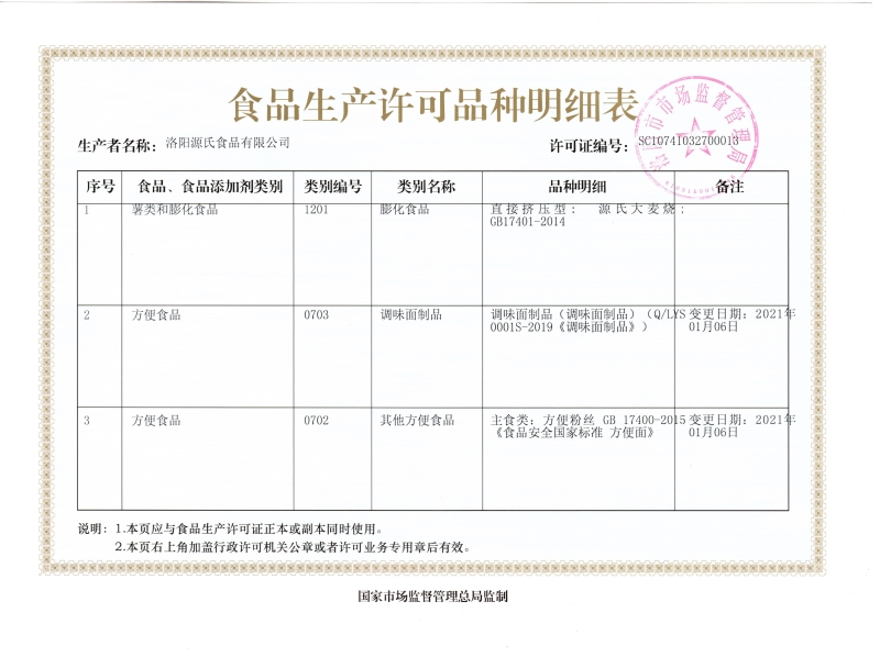 源氏食品生產(chǎn)許可證及細(xì)節(jié)列表 發(fā)布時(shí)間:2021-03-02作者:來源:洛陽源氏食品有限公司點(diǎn)擊:5985 上一篇:營(yíng)業(yè)執(zhí)照 下一篇:老式大辣片出廠檢驗(yàn) 分享到:0 用手機(jī)看 拍下二維碼,信息隨身看 試試用微信掃一掃,在你手機(jī)上繼續(xù)觀看此頁(yè)面。