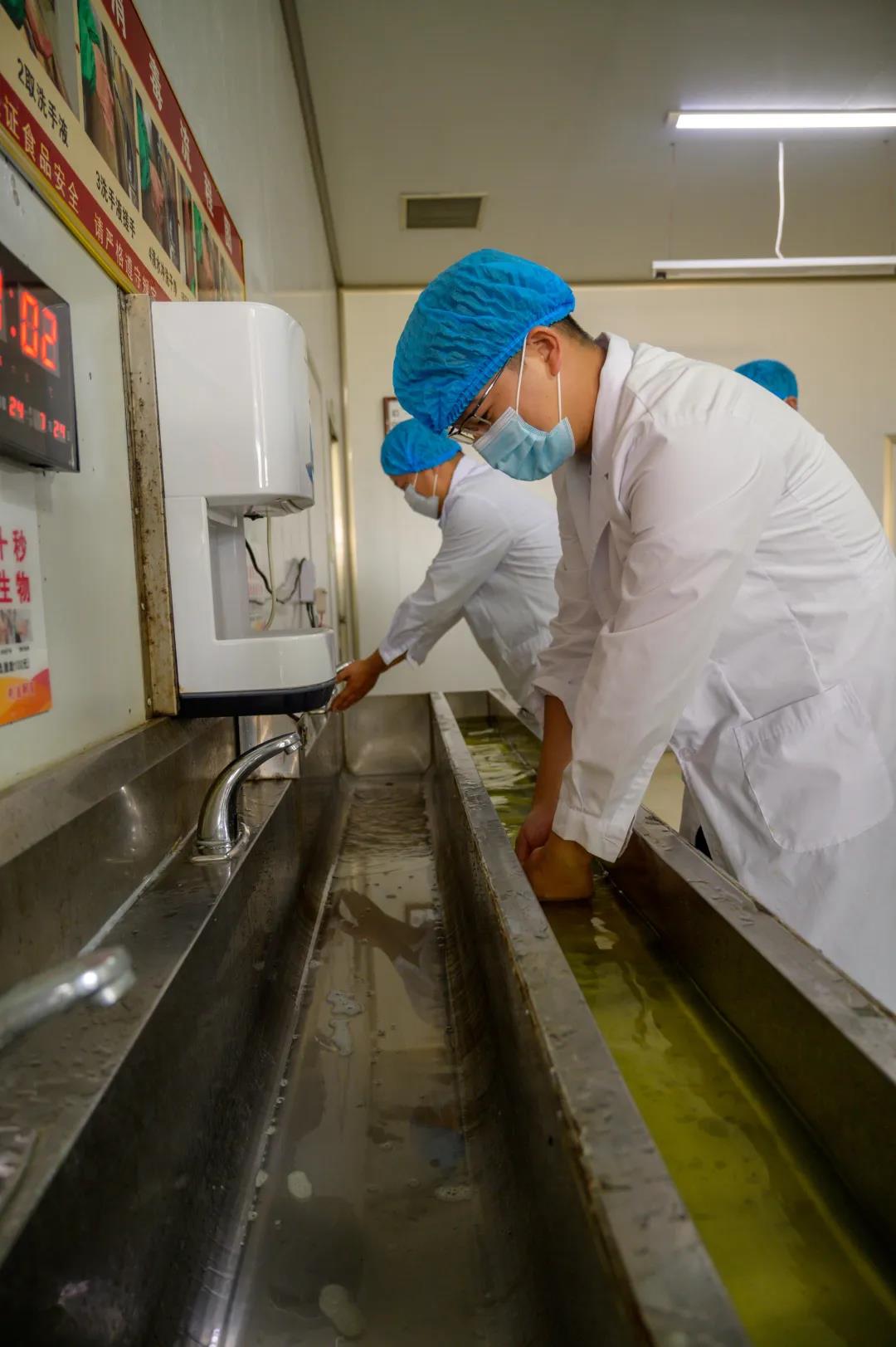嚴(yán)格遵守源氏食品相關(guān)規(guī)定,全副武裝、洗手消毒、360度風(fēng)淋除塵之后進(jìn)入生產(chǎn)車(chē)間